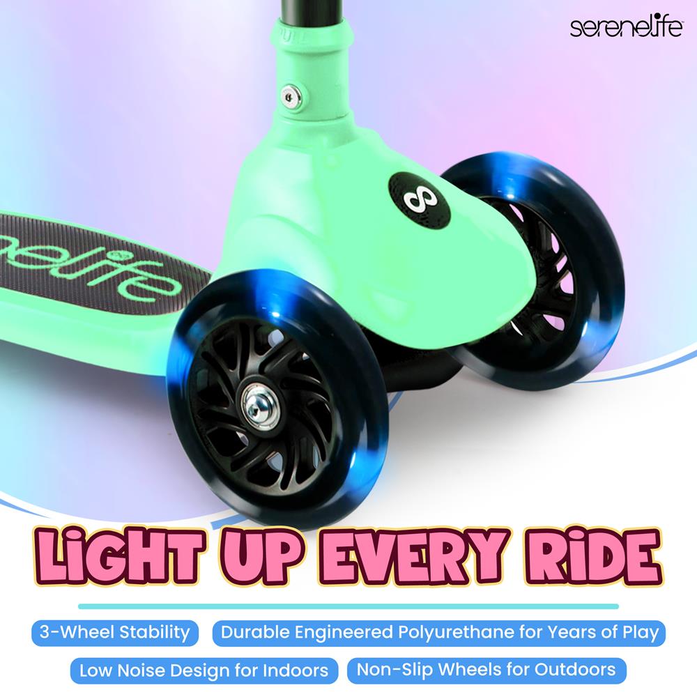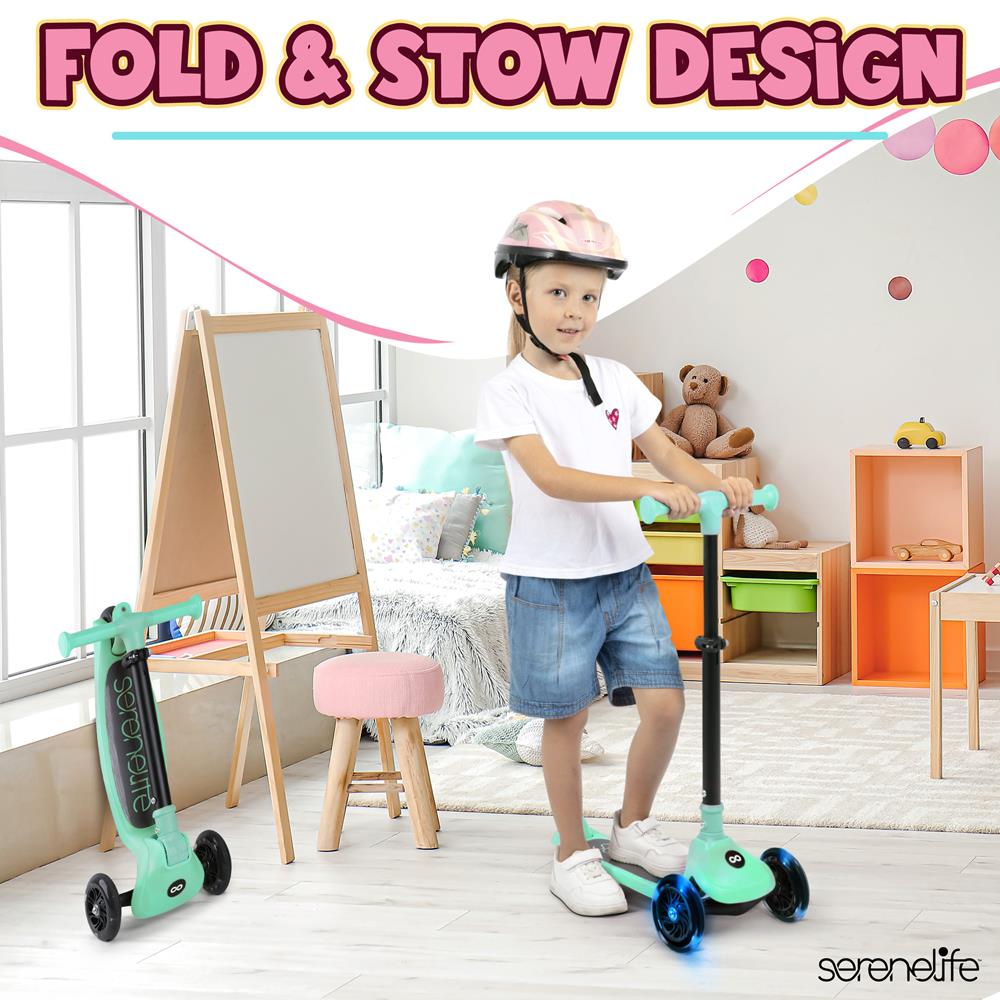 3-Wheel Kids Scooter, Foldable, LED Wheels, Lean-to-Steer, Mint Green