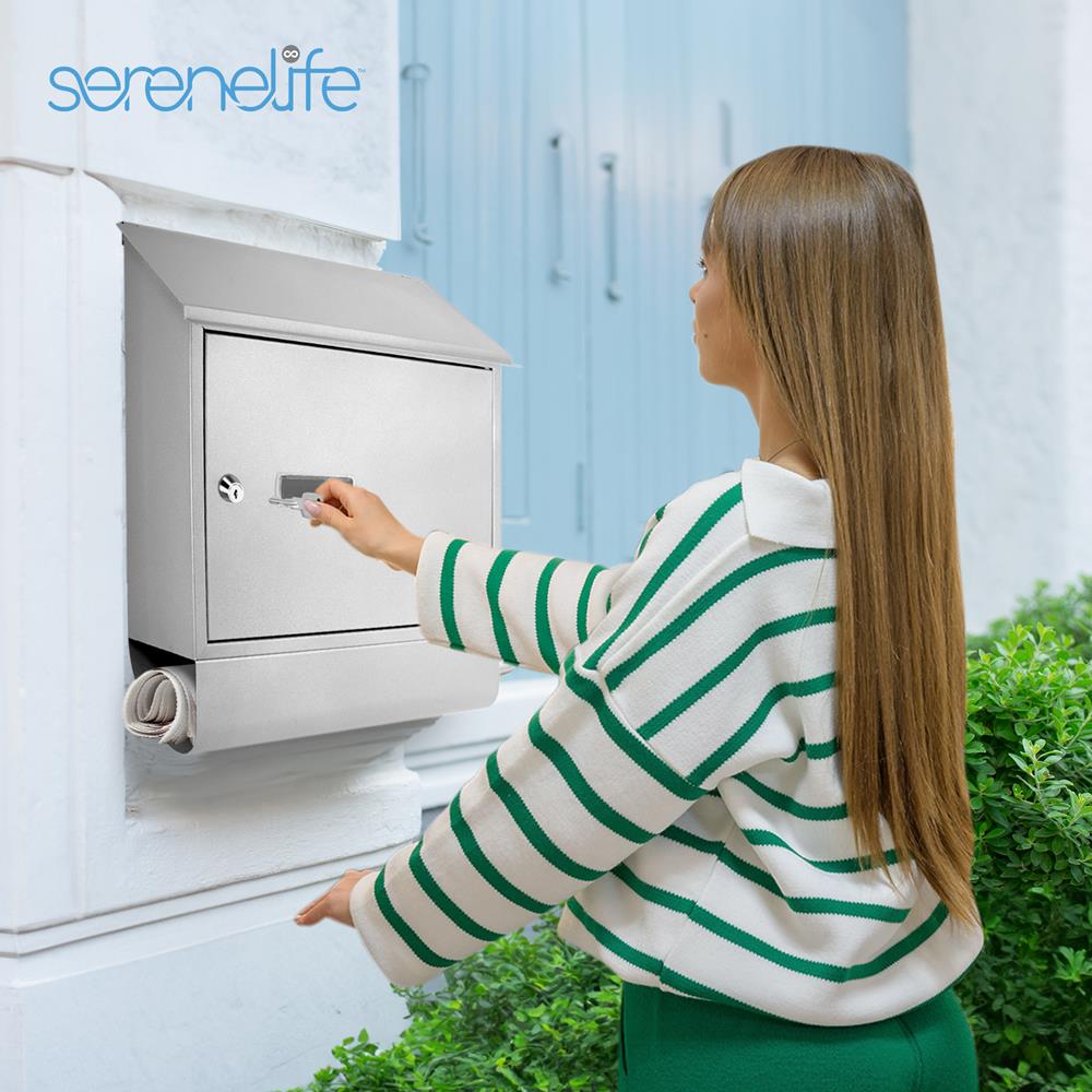 The SereneLife mailbox is rugged and reliable, constructed from galvanized steel. Mount the mailbox in a convenient location indoors or out. Weather-resistant construction allows for universal placement on virtually any flat surface. The secure key and locking mechanism provides mail safety and the unit includes (2) keys.