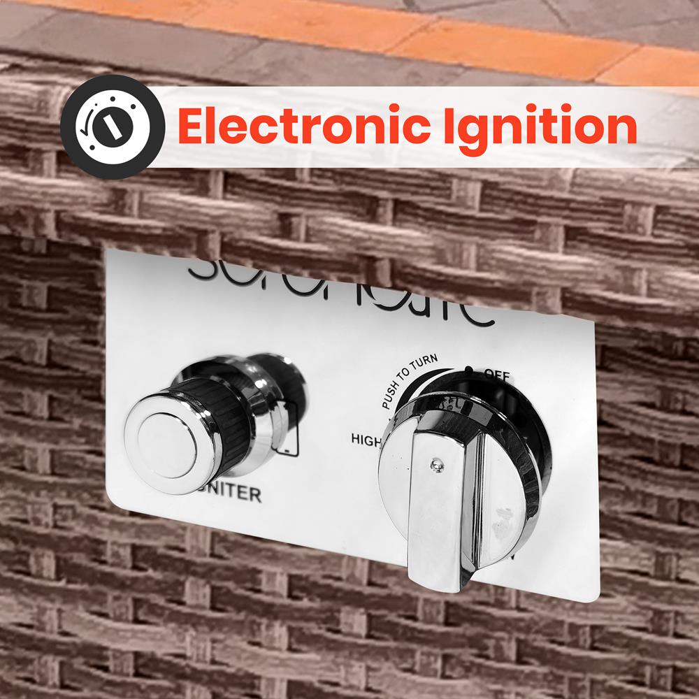 - Sturdy Wicker base with tile tabletop Gas Fire Pit Table