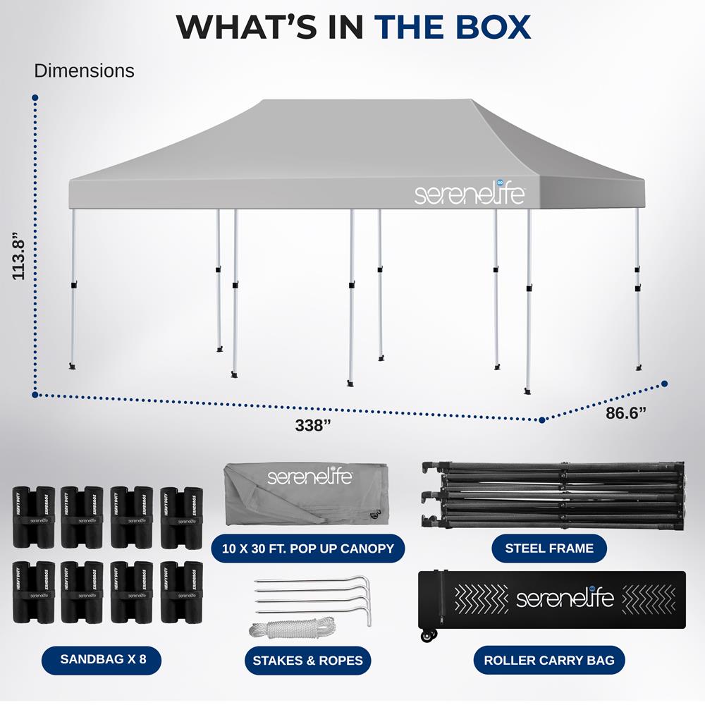 - (1) 10 x 30 ft. Pop Up Canopy Cover