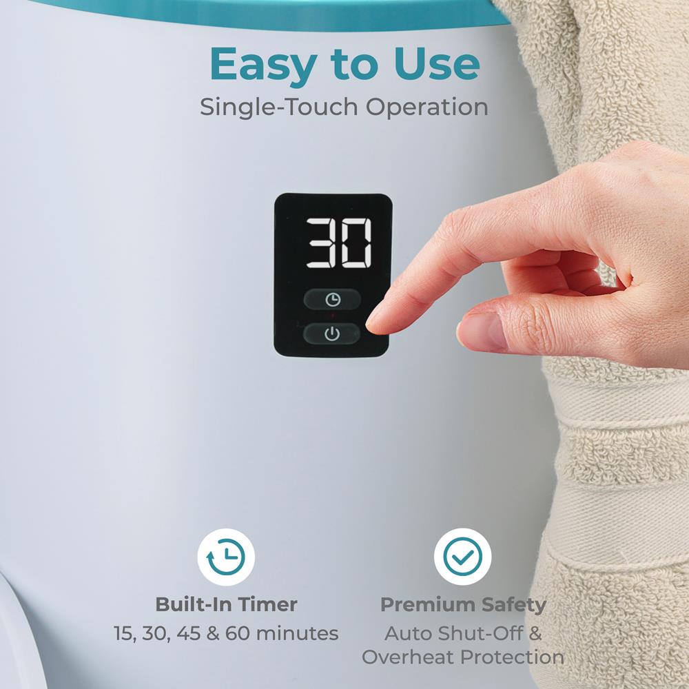 - EFFICIENT TOWEL & BLANKET WARMER - Indulge in the luxurious comfort of our Blue Single Touch Blanket and Towel Warmers for bathroom. With a built-in timer, choose heating durations of 15, 30, 45, or 60 minutes, letting you enjoy warm towels/blankets