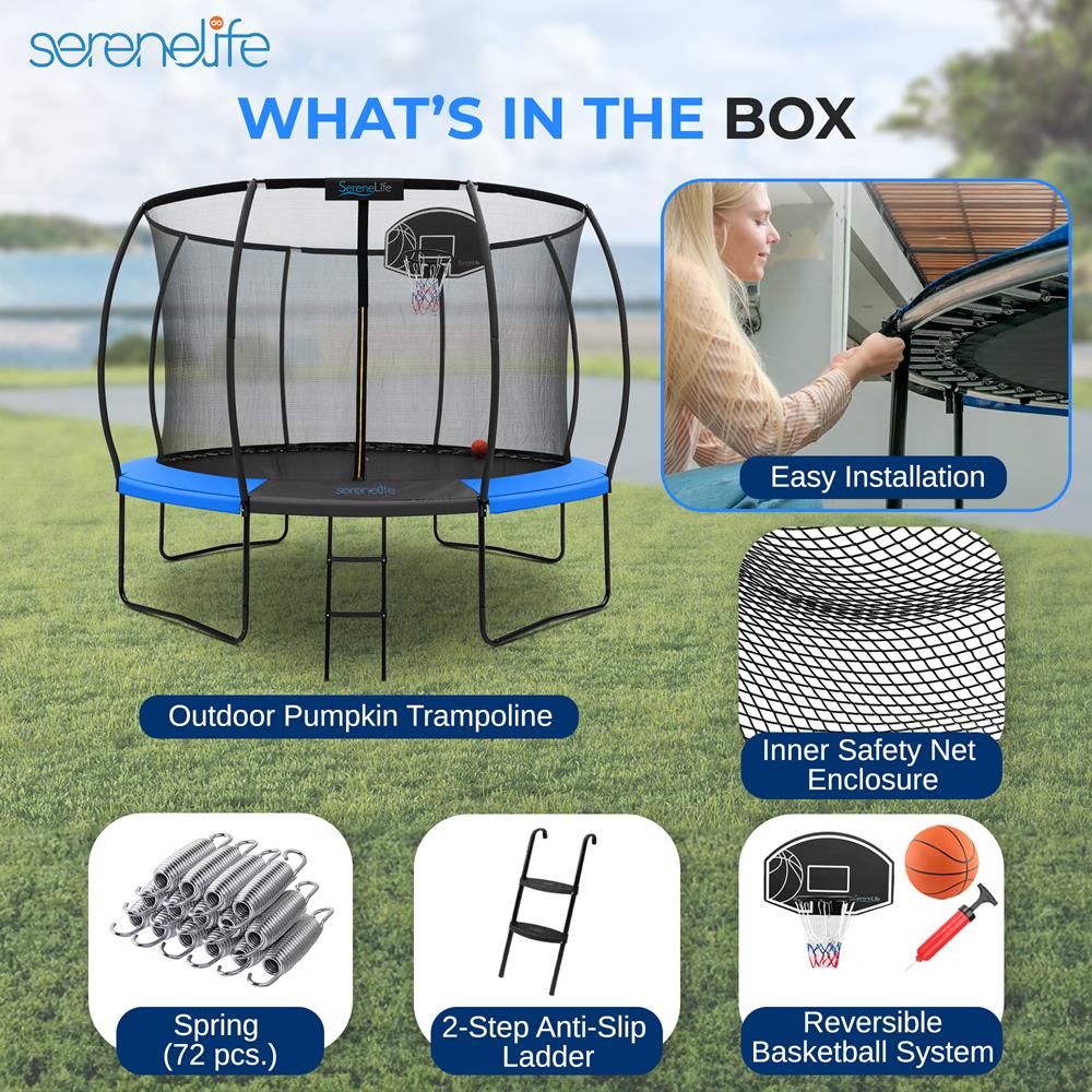 - Trampoline Style: Outdoor, Backyard, Pumpkin-shaped, Inner Enclosure