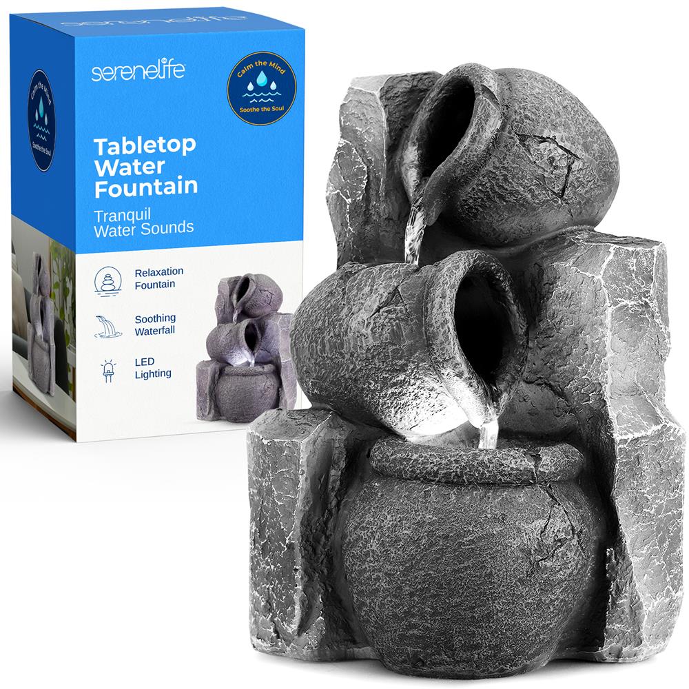 The SereneLife Water Fountain - Relaxing Tabletop Water Feature Decoration - Compact Tabletop Fountain - Soothing & Relaxing Water Flow - Hassle-Free & Simple Plug-in Operation - Built-in Pump Continuously Circulates Water - Perfect Decorative Accent for Any Room in the House - Can be Used for Indoor/Outdoor Table Placement.