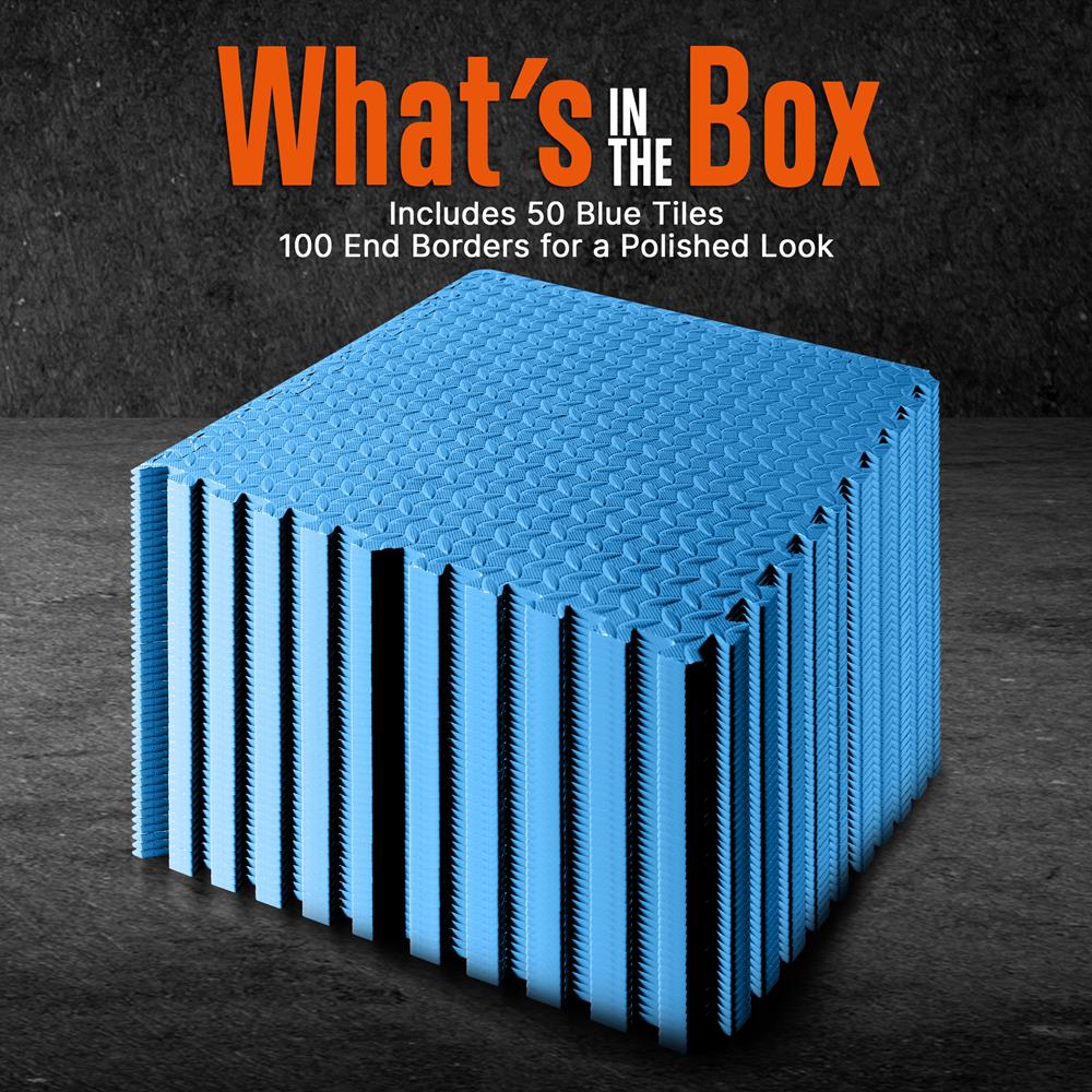 Exercise Mat 50 Pcs - Cushioned EVA Foam, Non-Skid, Easy Assembly, Blue